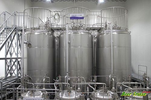 計16基の熟成タンク(BBT)のうち、手前側の4基が4000リットルタンクで、