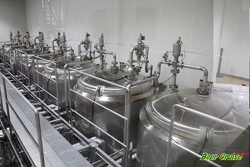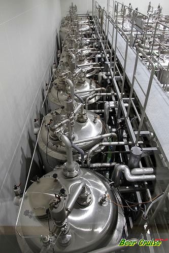 手前から2番目のタンクが、8000リットルの煮沸槽(ケトル)